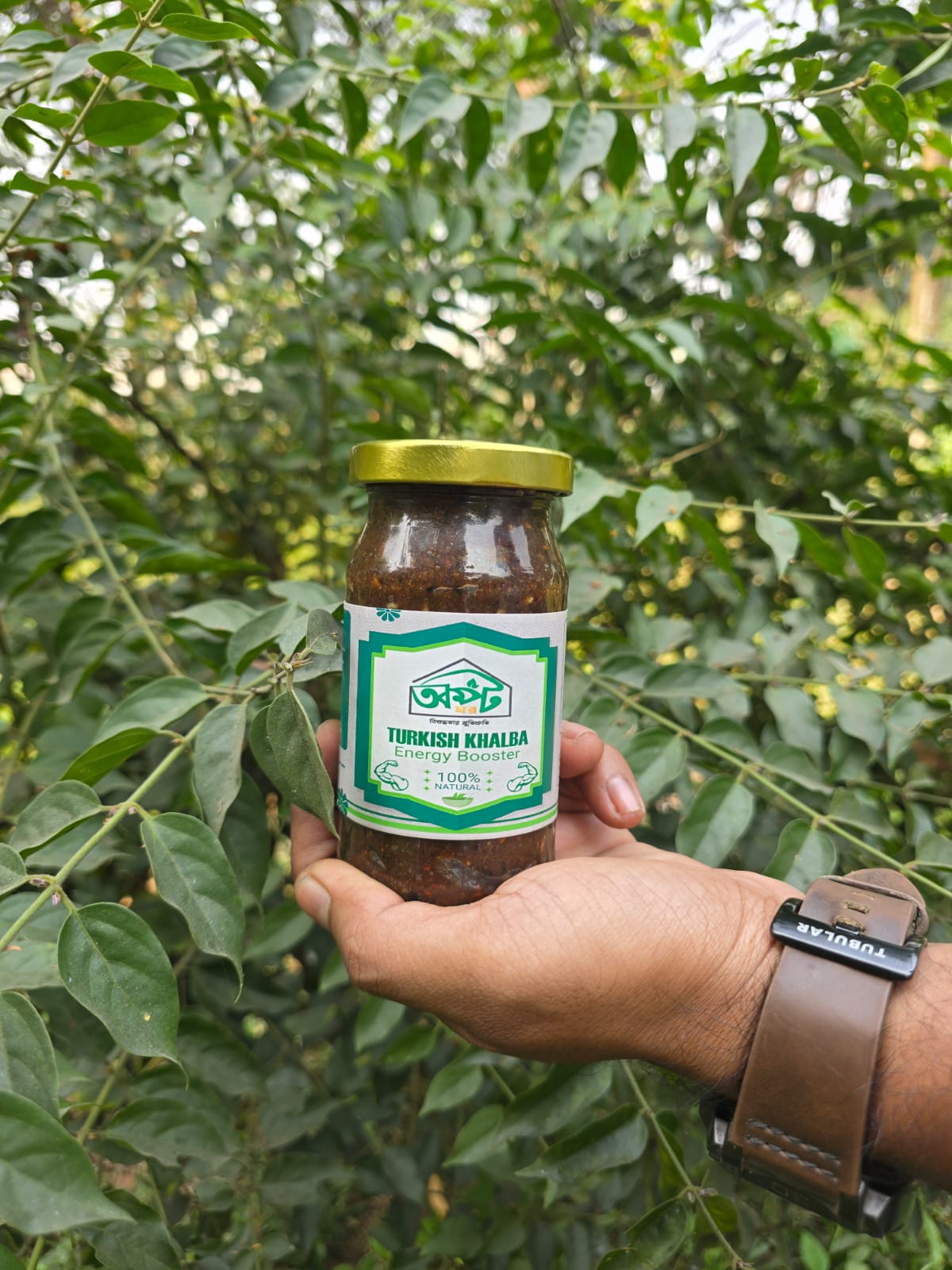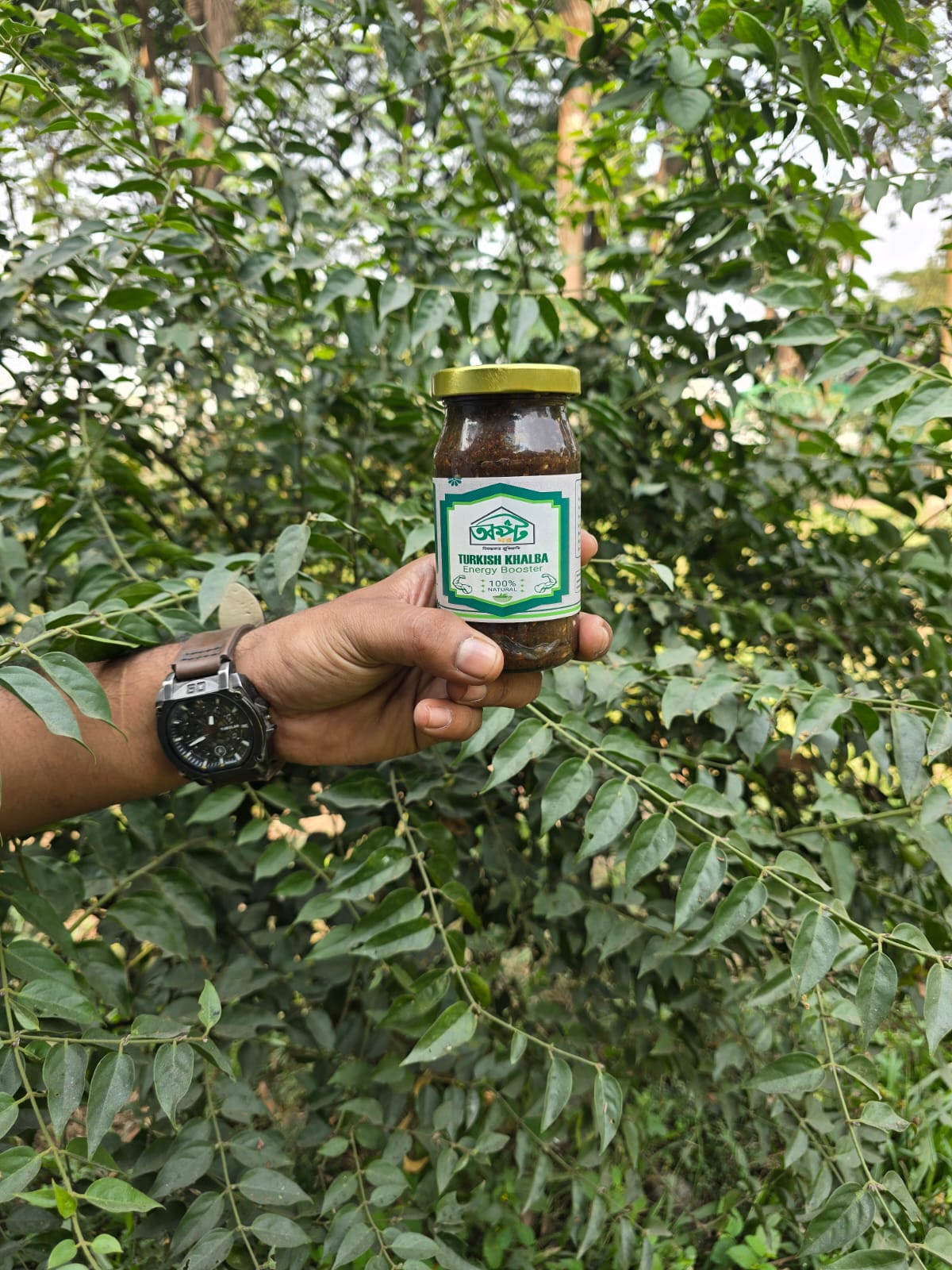 ১০০% প্রাকৃতিক ও হালাল উপাদান: খাঁটি তিলের পেস্ট (তাহিনি), মধু/চিনি, বাদাম, পেস্তা, আদা, কালো জিরা বা অন্য হার্বস দিয়ে তৈরি – কোনো কেমিক্যাল বা প্রিজারভেটিভ নেই।